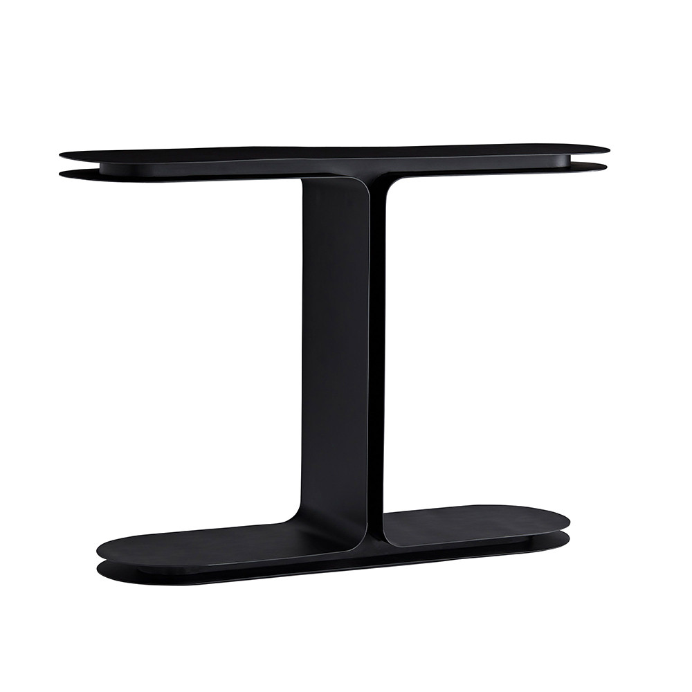 Enjoy the Alberto Console in your home today! A slender silhouette and handcrafted details define this modern console table. Iron is forged and bent by hand to create the unique double-layer structure that delivers an element of depth and dimension. A bronze finish accents its industrial appeal and accentuates the contemporary edge of this simple statement piece.
