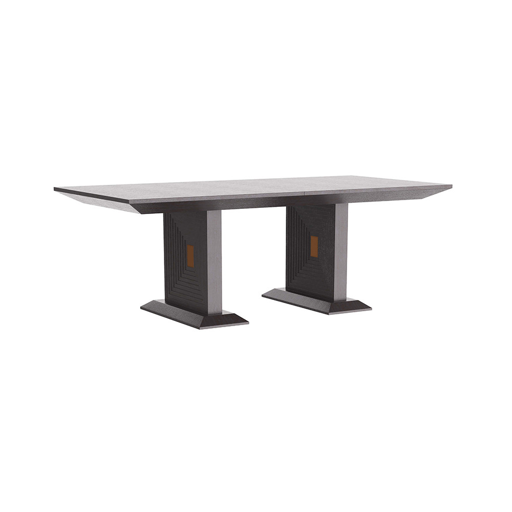 Enjoy the Renata Dining Table in your home today! Richly detailed with stepped plank legs that mimic ziggurat architecture, the Renata dining table makes a texture-rich addition to any entertaining space. The handsome extension table is created in sable-finished oak veneer that is punctuated with antique detailing. Finish will vary.
