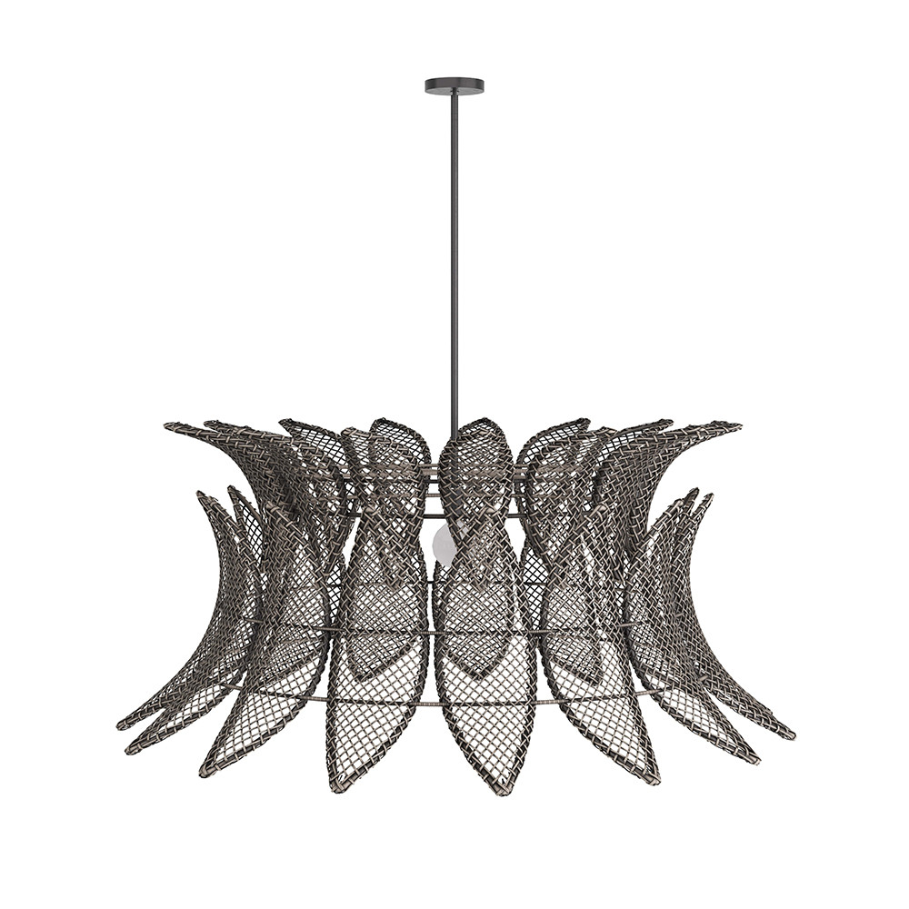 Enjoy the Tisdale Pendant in your home today! Botanic beauty and artisanship come together in our Tisdale pendant. The statement piece is formed in woven, gray-washed rattan petal shapes that bend gracefully over a flared framework of bronzed iron. The large-scale fixture is fitted with a pipe suspension also in bronzed iron. Finish will vary.