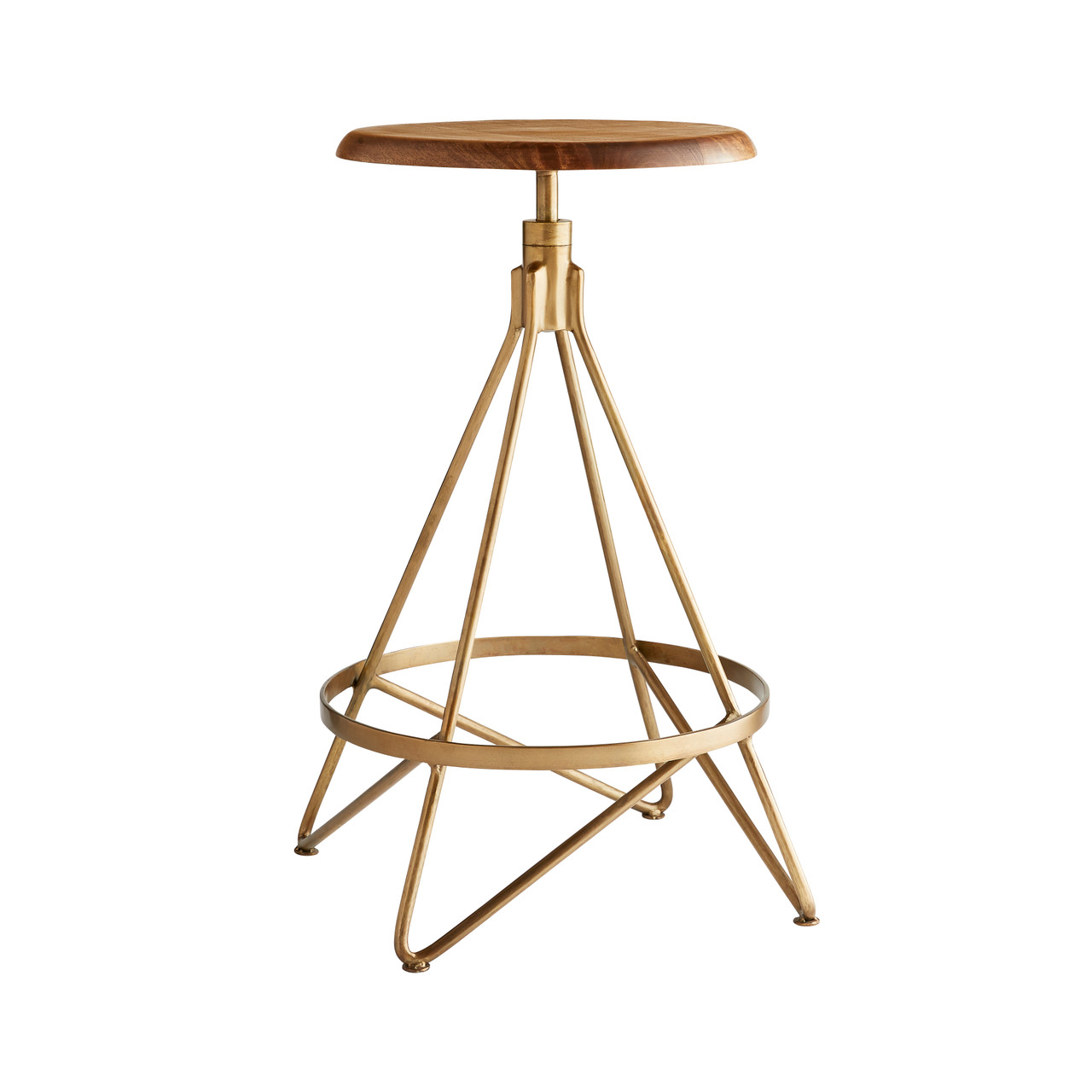 Enjoy the Wyndham Swivel Counter Stool - Natural Wax/Vintage Brass in your home today! Counter stool with tube shaped triangular iron legs in vintage brass finish with round wooden swivel seat in distressed wax finish.