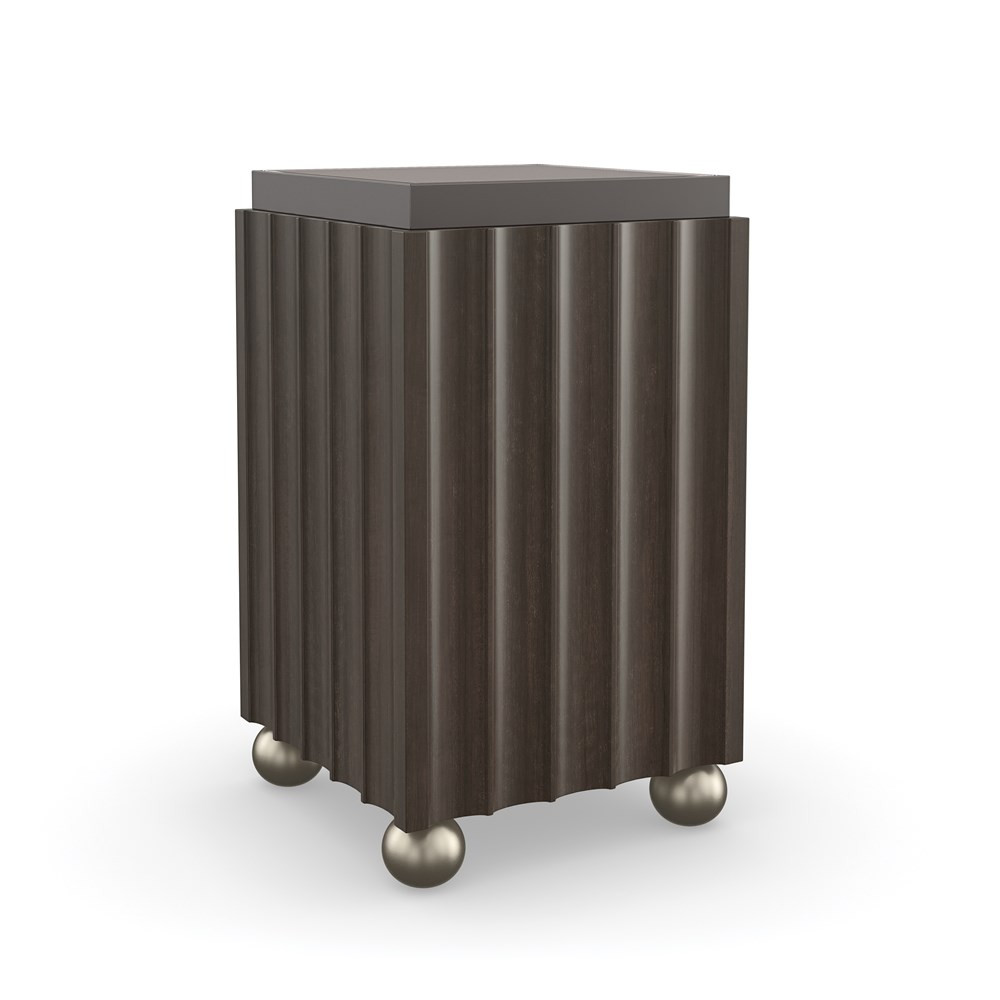 Enjoy the Next To You Pedestal in your home today! Small spot table or decorative pedestal, this simple yet sculptural form takes inspiration from Greco-Roman architecture. Defined by a fluted column, it features an inset Bronze Glass top framed in Dark Chocolate, and metallic ball feet in a Brushed Whisper of Gold for a hint of shimmer and ease of mobility. Style alongside a sofa or chair, or pair with Up To You to create a multi-dimensional, gallery-like display.