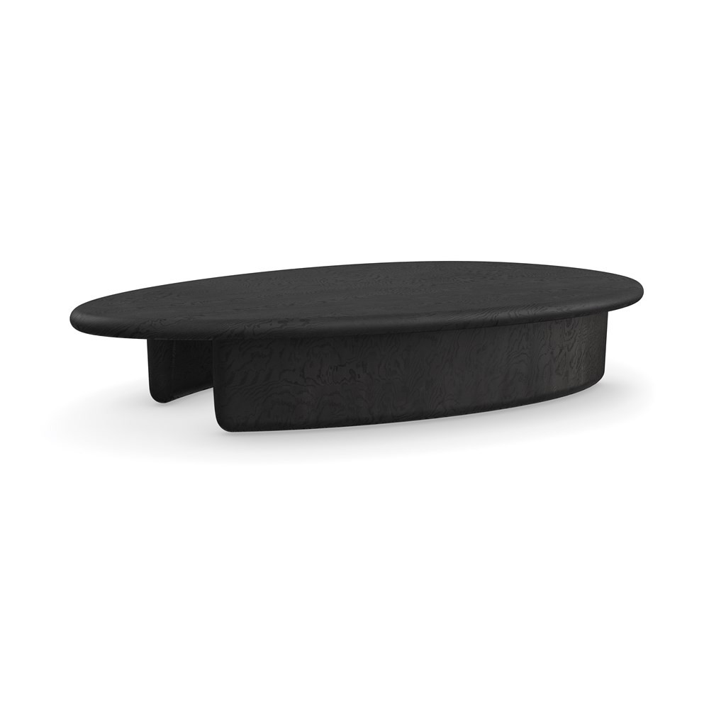 Enjoy the Orion Cocktail Table in your home today! Effortless and organic, the Orion cocktail table makes an elegant statement with its soft, pebble shape. Crafted from Tamo ash wood veneers in a dramatic Coal finish, its fluid form features an expansive tabletop balanced on a uniquely shaped, asymmetrical base. Style with our Orion small side table for added depth and function.