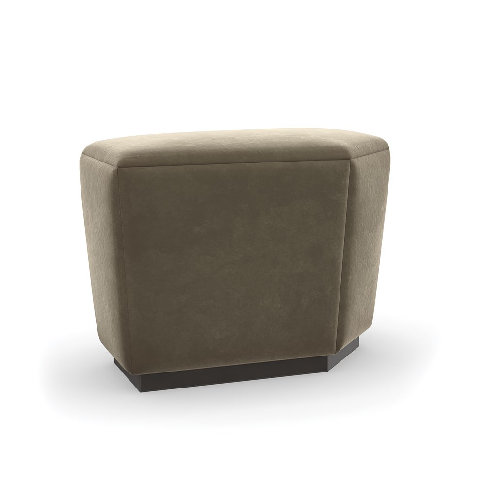 Enjoy the Pollux Ottoman in your home today! An artful integration of form and function, this faceted storage ottoman is named for one of the Gemini twins in Greco-Roman mythology. Upholstered in a luxuriously soft mohair fabric, its sculptural silhouette is balanced on a Dark Chocolate plinth base. Style on its own in a living room or conversation nook, or pair with Castor and Gemini, our faceted spot table, for chic end-of-bed storage and plush seating option.