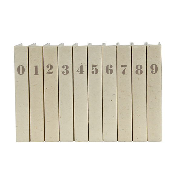 Enjoy the E Lawrence "Stamped" Numbers in your home today! Calming and neutral, gray numbers on a neutral background. Go as high as you want - make it look like a scientists library. 8.5" tall specify numbers or we will just send you the qty you order starting with the number "1" and counting upward by ones. blank neutral covers Books are priced individually and sold in a minimum quantity of three. Sizes and style of each book within a collection will vary per order. The picture shown depicts all the book styles in one collection.