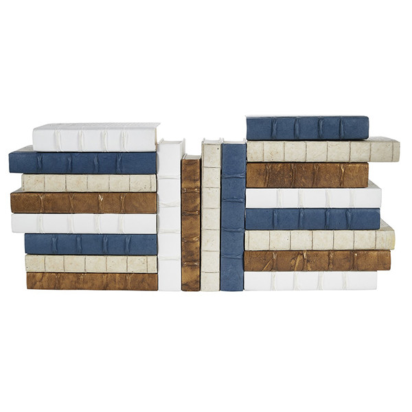 Originally just plain hardback books, E. Lawrence, Ltd. transformed these books into beautiful decorative objects sure to add the punctuation mark to any decor. Each book is deconstructed and reassembled by hand with the finest materials. New spine details are made using scanned 18th and 19th century documents and steel engravings that are printed on beautiful handmade parchment paper that really captures their original elegance. Hundreds of styles available as well as several color choices. Artfully hand made in the U.S.A.