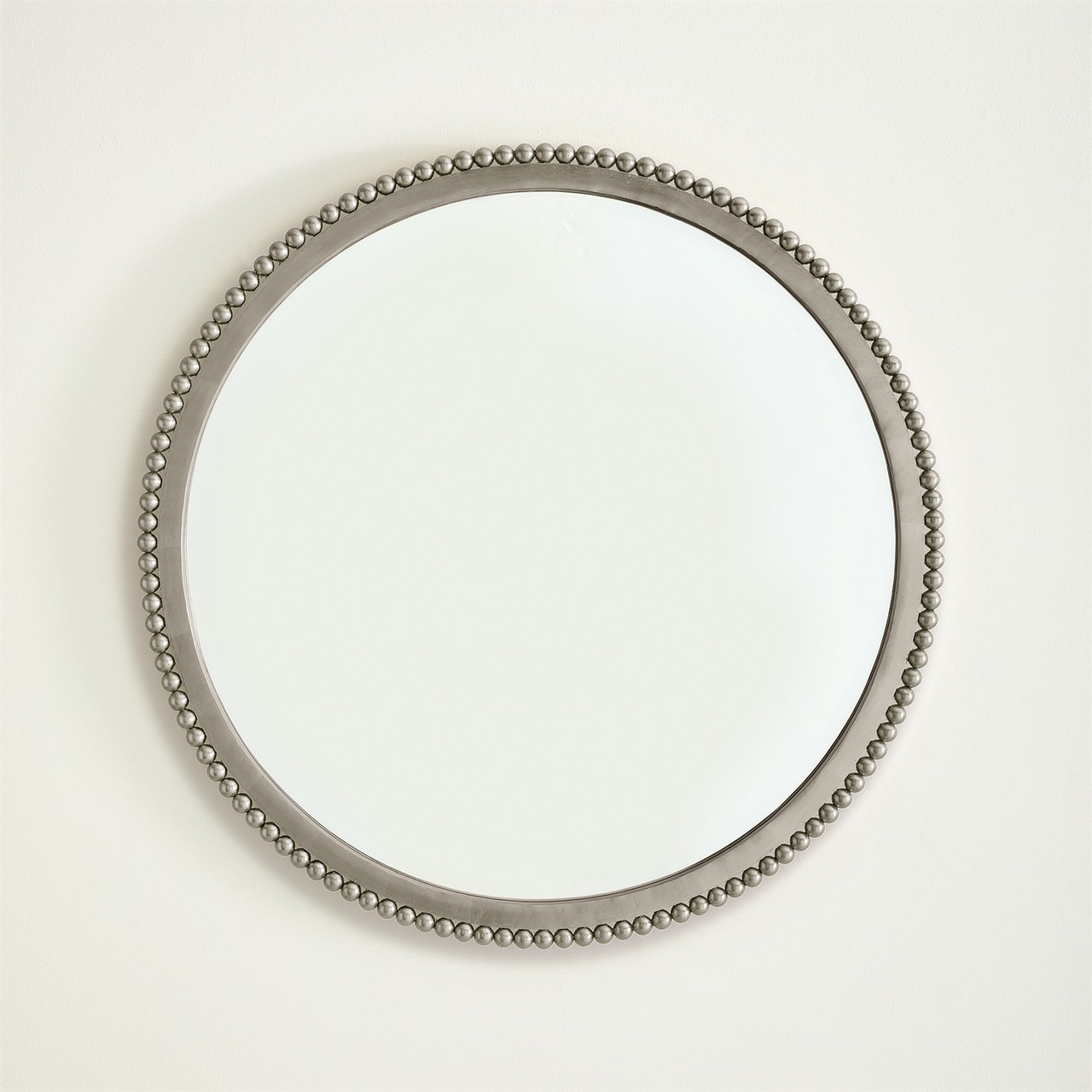 Enjoy the Ball Bearing Mirror - Silver Leaf - Lg in your home today! The Ball Bearing Mirrors, with their round design, are a captivating addition to any space. Crafted from iron with a nickel finish and featuring beveled mirror, they are a testament to artistry and style.
