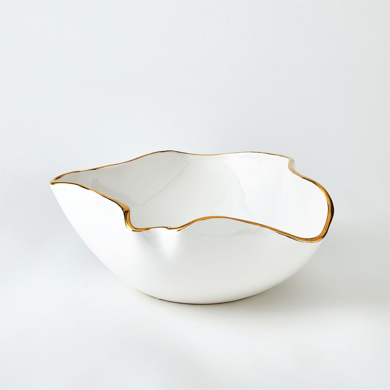 Enjoy the Currents Bowl - White - Gold in your home today! With its striking white gloss finish and hand-painted gold details, the Currents Bowl offers a stunning visual impact. Crafted from slip-molded Portuguese ceramic, this elegant piece adds a touch of sophistication to any space, making it a perfect centerpiece for your décor.