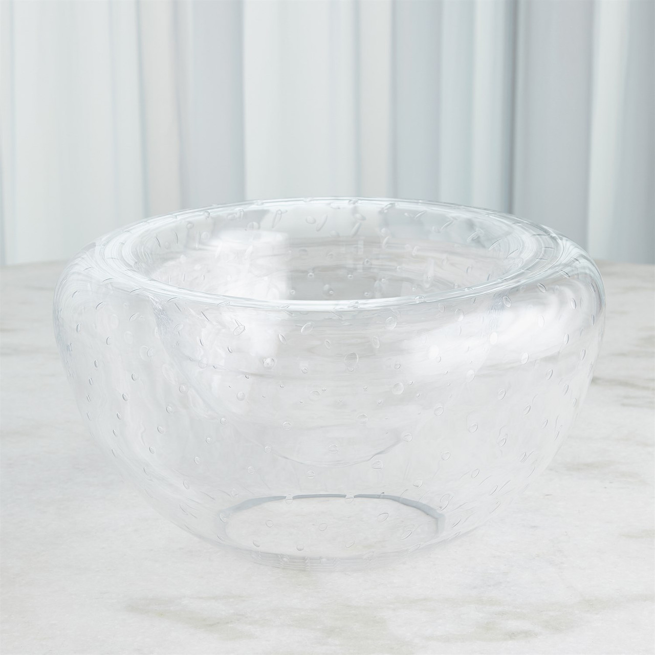 Enjoy the Double Take Bowl - Clear Seeded - Lg in your home today! Seeded crystal clear glass and a unique double wall design create the subtle statement of our Double Take Collection. We love grouping these pieces together for maximum impact.