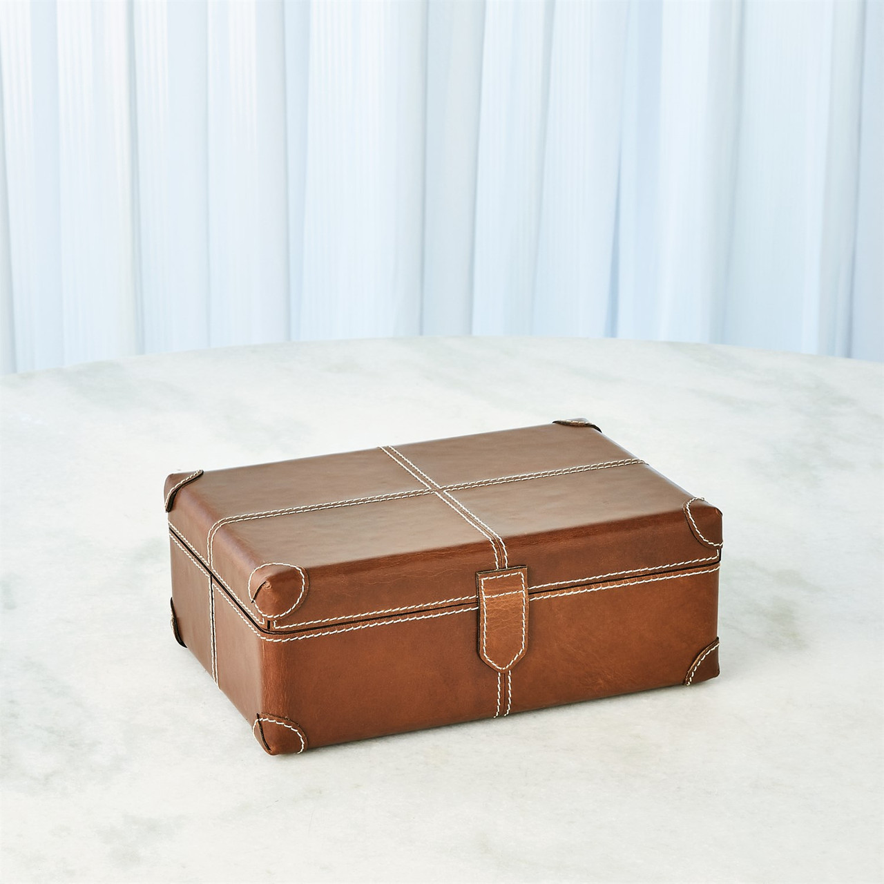 Enjoy the Emporium Home Tiburtina Box - Saddle - Sm in your home today! A vintage steamer trunk was Ashleys inspiration behind our Tiburtina Collection. With finely stitched details and interior storage trays and pockets, each piece is completely clad in a sublime Saddle colored leather.
