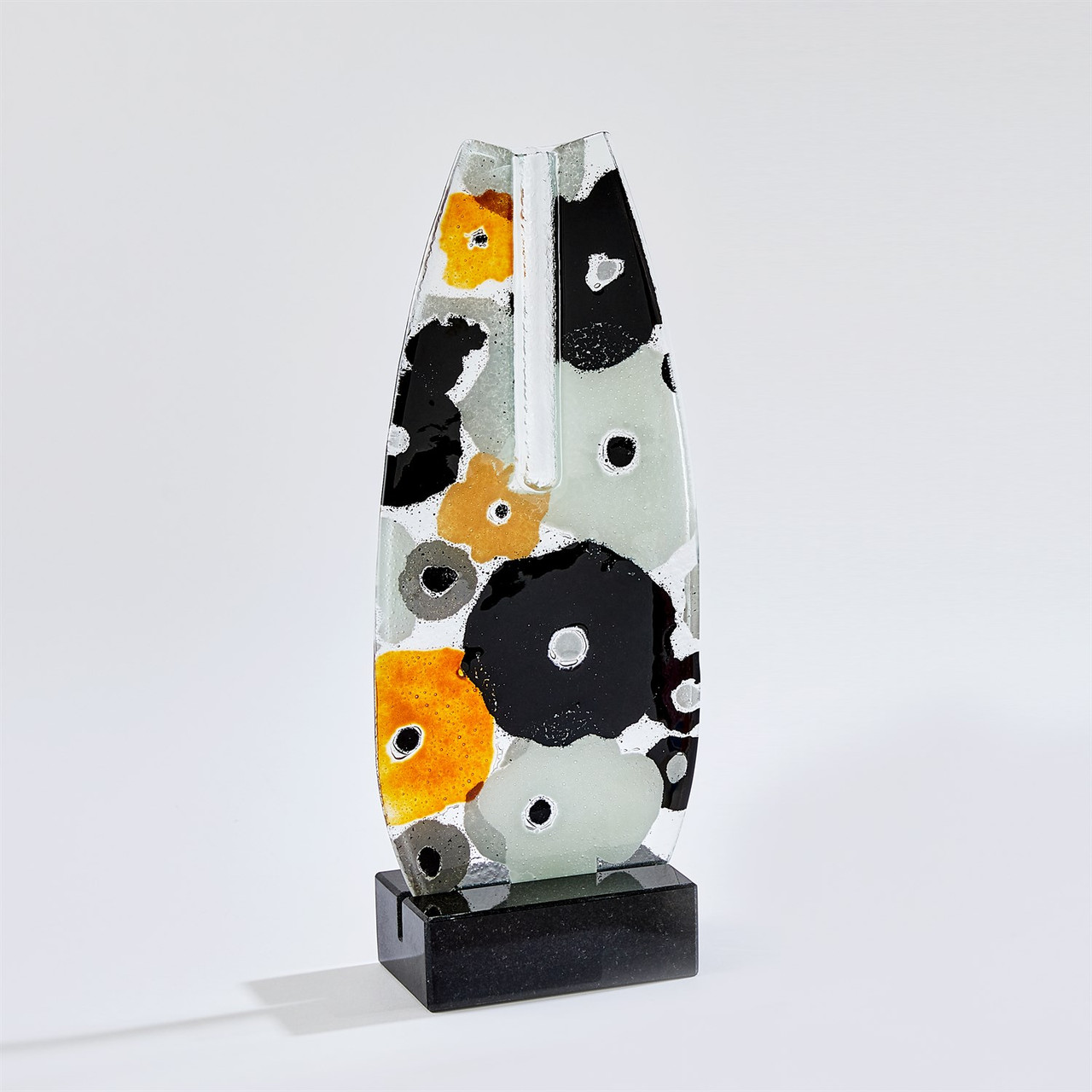 Enjoy the Fused Floral Flat Vase - Neutral in your home today! The Fused Floral Collection by Portuguese artisans begins with clear glass cut into desired shapes. Using templates, artisans layer colored sand onto the glass, creating intricate floral designs. After layering, a second clear glass piece is added to form a sandwich. The assembly is then carefully kiln-fired at high temperatures, fusing the layers and producing exquisite floral art.