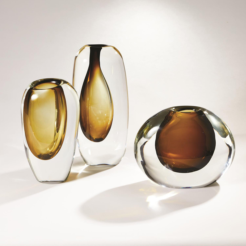 Enjoy the Off Set Round Vase - Moss Green in your home today! Polish art glass. The color is accomplished by blowing colored glass in layers. This artisan process produces substantial and important pieces.