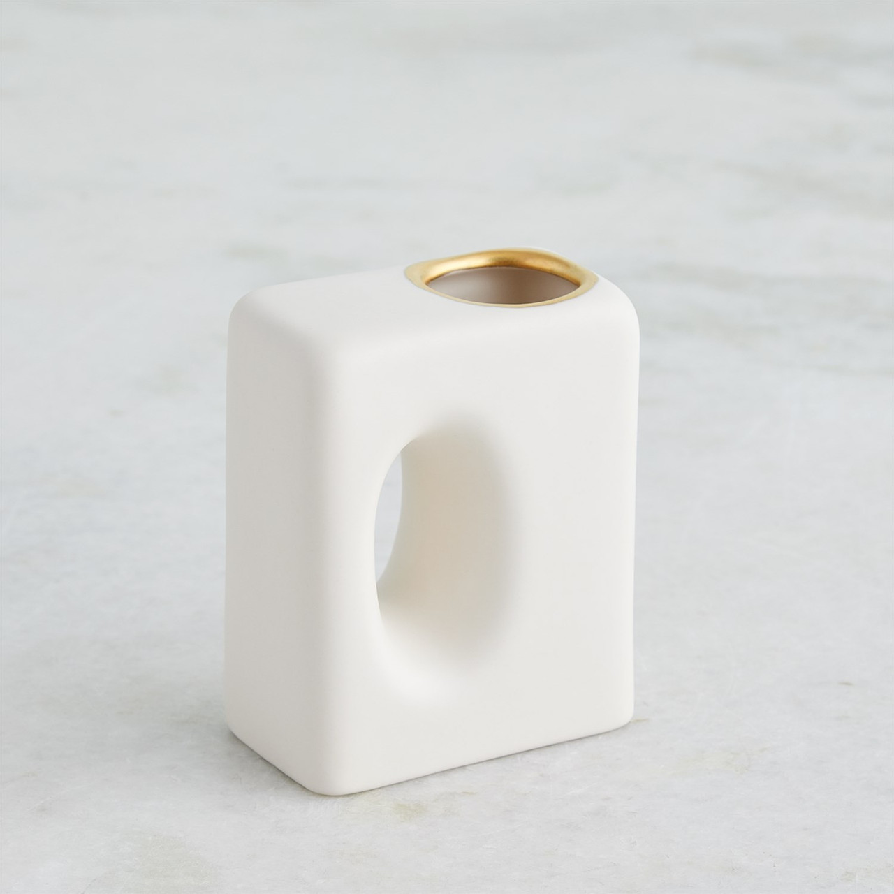 Enjoy the Oh Yes Vase - Matte White - Gold Rim - Sm in your home today! Handcrafted from Portuguese slip-molded ceramic, the Oh Yes Vases boast a matte white finish complemented by meticulously hand-painted gold rims.