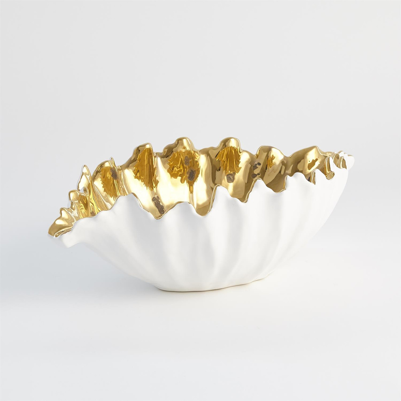 Enjoy the Organic Wave Oval Bowl - White - Gold - Sm in your home today! Ashley is drawn to organic shapes with a feminine flair and our Organic Wave Collection is a perfect example. Designed to highlight the flutters and folds we often see in nature and highlighted with gorgeous matte white and 24K gold glazes, featuring intentional, natural pitting.