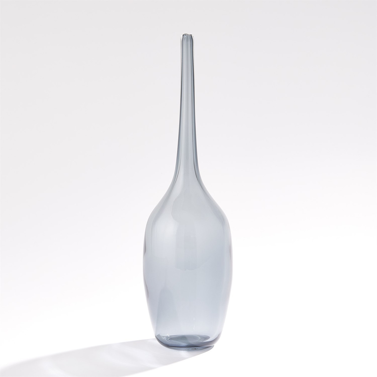 Enjoy the Pinnacle Bottle - Grey - Tall in your home today! Crafted from handblown art glass, the Pinnacle Bottles boast a sleek design, perfect for infusing any space with a vibrant touch of color. Their versatility makes them ideal for effortless layering with your favorite decor pieces. Each bottle is unique due to its handmade nature.