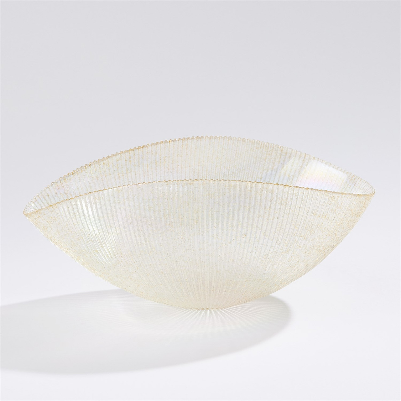 Enjoy the Pleated Bowl - Gold - Lg in your home today! The Pleated Bowls are beautiful handmade art glass from the Murano region. This manufacturer invented the centrifuge machine and technique that spins molten glass into discs that are then manipulated by hand into various organic shapes. During the process, varying colors and finishes are applied to the glass. While still warm, the pieces are put through an annealing process in a tunnel oven to cool slowly so as not to explode. The annealing process can take anywhere from hours to many days depending on the thickness of the glass. Annealing is a process of slowly cooling glass to relieve internal stresses after it is formed. The process may be carried out in a temperature-controlled kiln known as a Lehr. Glass that has not been annealed is liable to crack or shatter when subjected to a relatively small temperature change or mechanical shock. Annealing glass is critical to its durability.