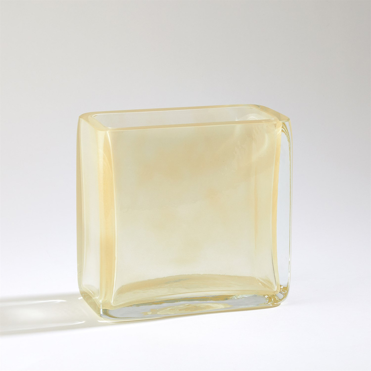 Enjoy the Rectangle Block Vase - Gold - Lg in your home today! Crafted by Polish artisans, the Rectangle Block Vases achieve their encased color through a hand-blowing technique in which clear and golden-colored glass are layered together to create a distinctive visual effect. Each piece is unique and one-of-a-kind.