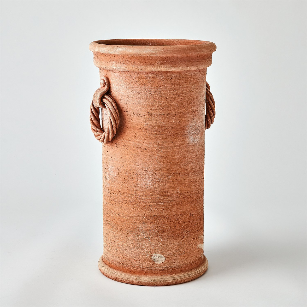 Enjoy the Rope Handle Vessel - Terracotta in your home today! The Rope Handle Vessel is meticulously crafted from Italian terracotta clay. Artisans hand-pack the clay into a mold through a process called Calco. Each mold is left to dry for 2-3 days, during which the clay naturally shrinks, making it easy to remove the mold. The urn is then transferred to a kiln and fired at 950 degrees, resulting in a beautiful piece that can grace your space both indoors and outdoors, bringing timeless elegance to any setting.