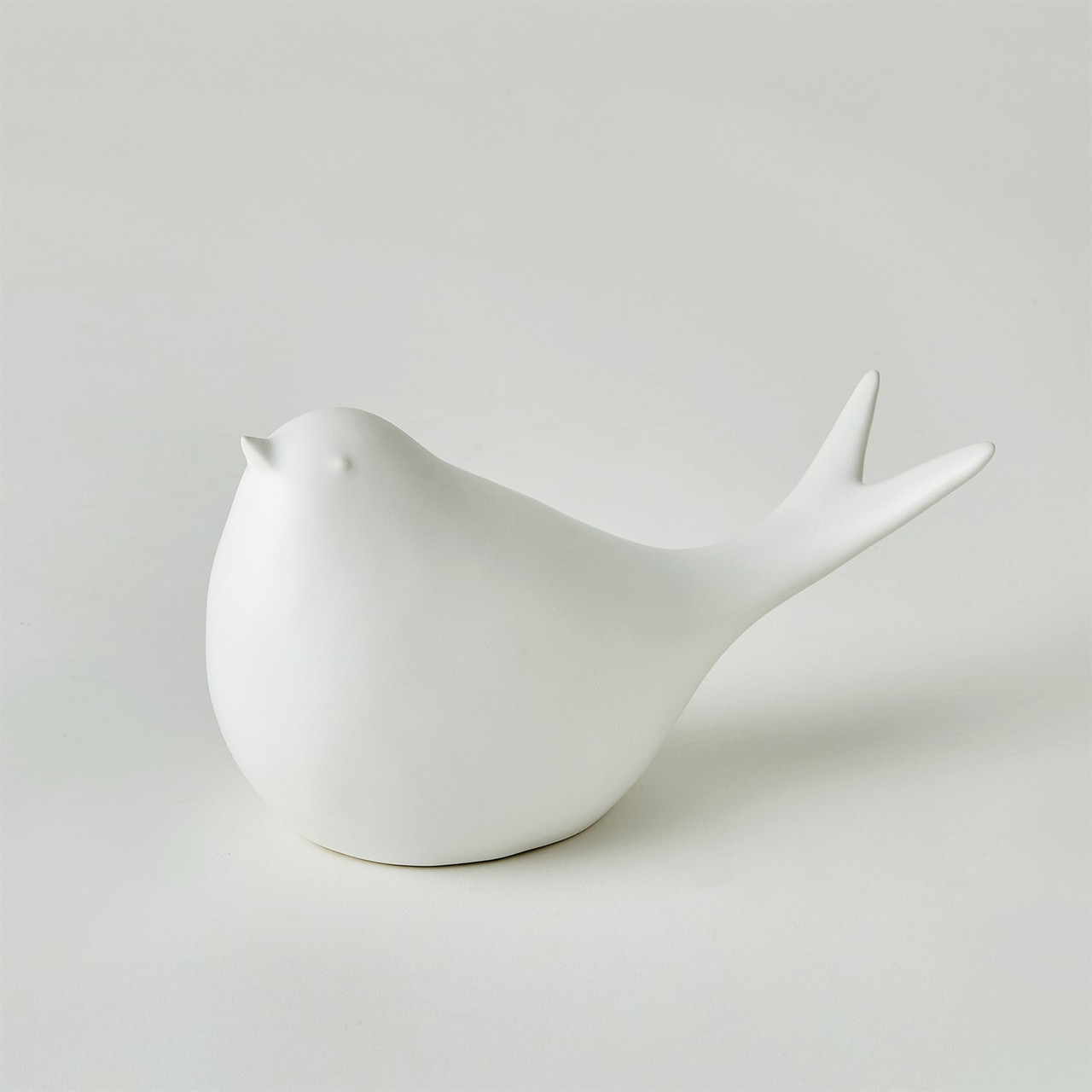 Enjoy the Sated Bird - Matte White in your home today! The Sated Birds are exquisitely crafted ceramic sculptures, capturing the essence of contentment and happiness in their appearance. These charming pieces are skillfully made using slip-molded Portuguese ceramic and come in three stunning finishes: matte white, matte black, and metallic bronze.