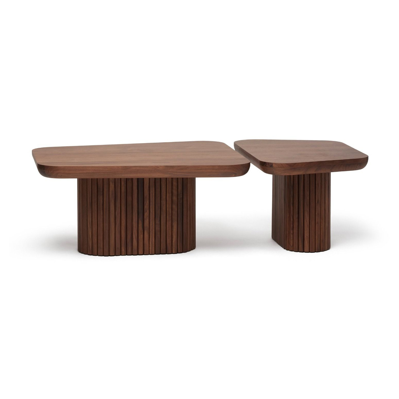 Enjoy the Carrabelle Bunching Cocktail - Walnut in your home today! Precise fluted bases play off surprising organic tops to make the walnut Carrabelle Bunching Cocktail Tables a truly handsome statement piece. *This item is made of solid wood. Item will not be exactly as pictured, subtle deviations in hue after finishing can be expected as a result of natural variations in coloration of the base material.