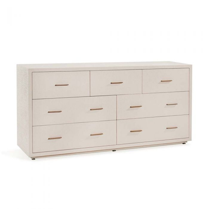 Enjoy the Livia 7 Drawer Chest - Sand in your home today! The Livia 7 Drawer chest brings super-chic style thanks to its Caribbean Sand faux linen texture and Antique Brass-finished hardware.