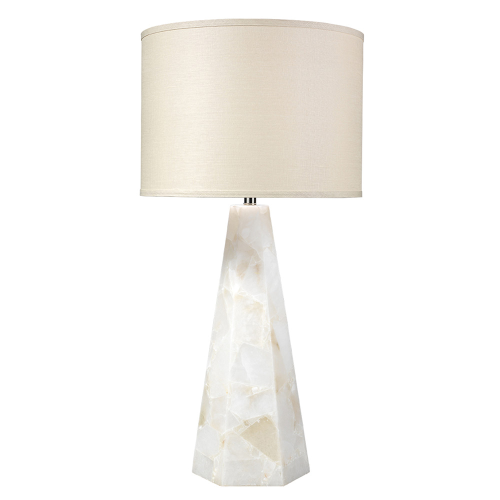 Enjoy the Jamie Young Borealix Alabaster Hexagon Table Lamp in your home today! Pure and elemental, our natural alabaster stone table lamp adds a timeless focal point to any tabletop. Handcrafted by artisans, the base exudes a pure, organic feel with captivating tonal variations and veining, lending the lamp one-of-a-kind beauty. Paired with a linen shade, this lamp is an elegant choice for a console, dresser or side table.