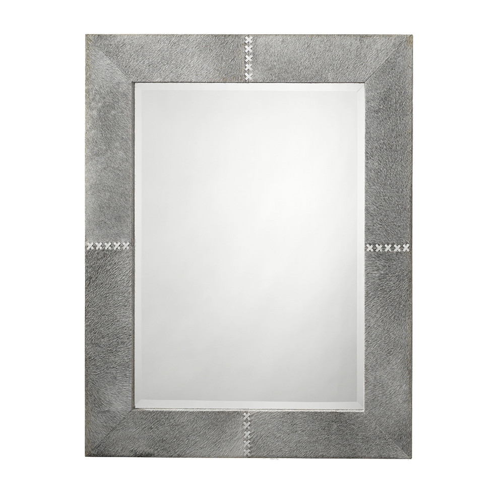 Enjoy the Jamie Young Cross Stitch Rectangle Hide Mirror - Grey in your home today! This beautiful mirror is hand-crafted from naturally selected hair on hide and whip stitched together with contrasting cross-stitches. Place it at the end of a hallway or over a console for a dramatic focal point that emphasizes natures unique variances in tone and markings of each hide.