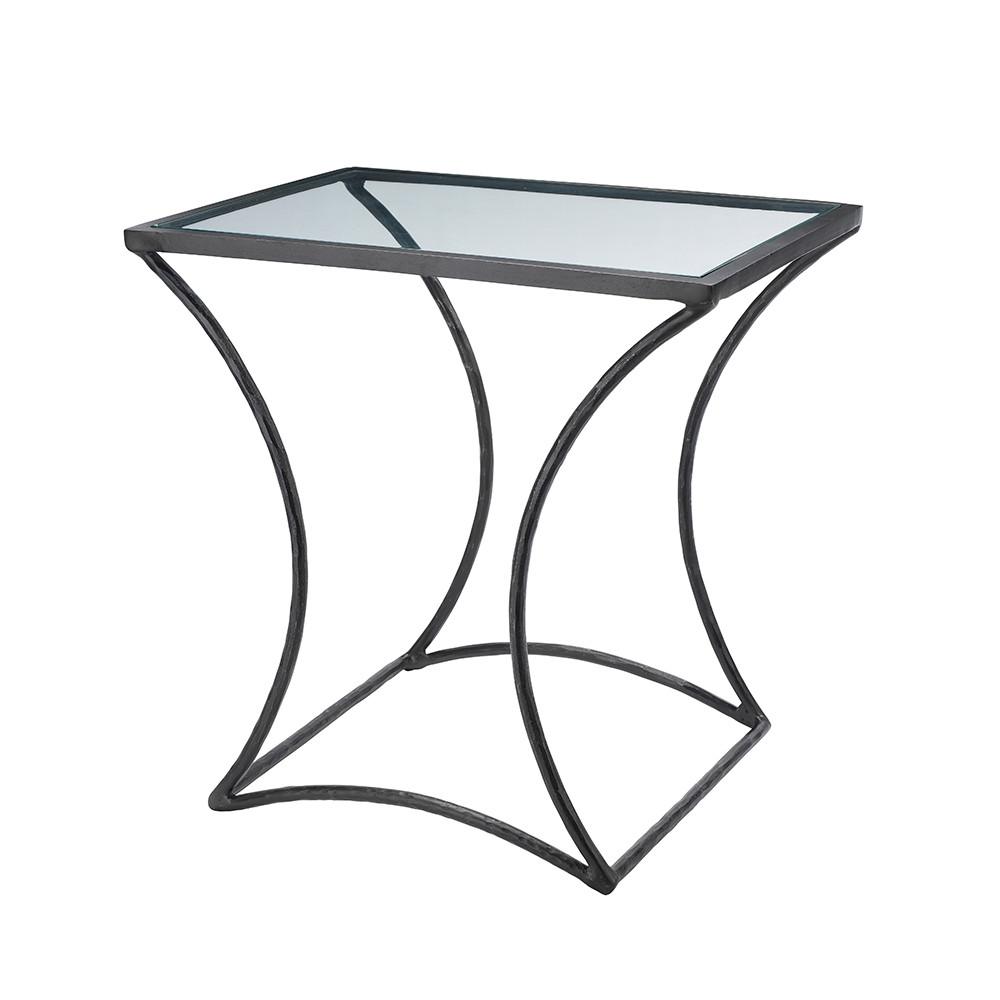Enjoy the Jamie Young Kai Iron Side Table in your home today! Unexpectedly combining grace and strength, this table features dynamically swooped hand-forged legs finished and topped with clear tempered glass. Finished in black, it offers a contemporary complement to a range of living spaces. Perfect for showcasing décor, pictures or displaying your favorite books.