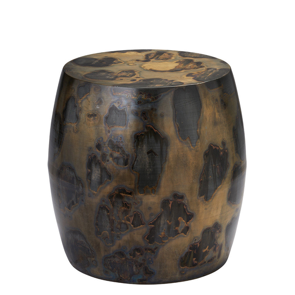 Enjoy the Realm Side Table in your home today! A unique chemical reaction is applied to this side table creating subtle hues of warm and cool metallics. Use this piece as an accent table near the perfect chair or use multiples to create a flexible coffee table. Finish & pattern will vary per piece. No two will be alike. Footprint: 14.5"dia. This piece is hollow w/ an opening of 14"dia.