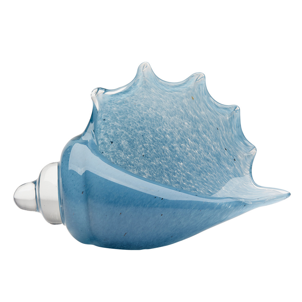 Enjoy the Triton Shell - Steel Blue Blown Glass in your home today! This blown glass sea shell is the perfect unexpected accent to any décor. From traditional to coastal, this piece is the perfect stunning addition to any seashell collection. Finish will vary, glass is hand blown and may vary with bubbles and slight differences in color. Each shell has a flat bottom that measures 1.5"dia.