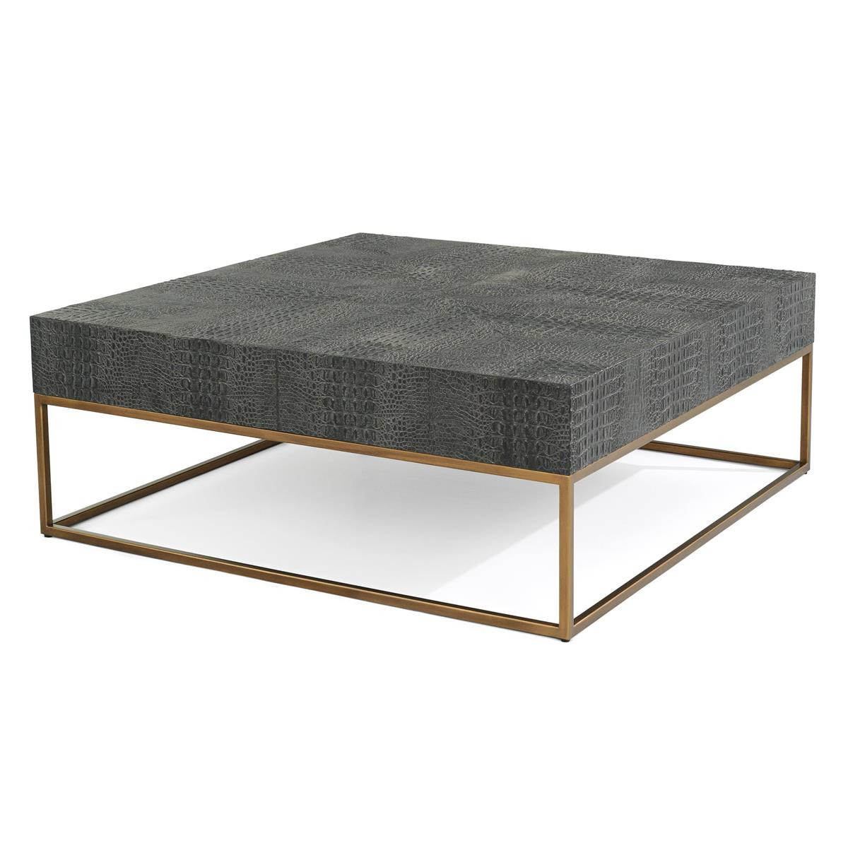 Enjoy the Greystoke Cocktail Table in your home today! Greystoke Cocktail Table features a top with faux crocodile hide in greystoke black and metal base in an Aztec gold finish.