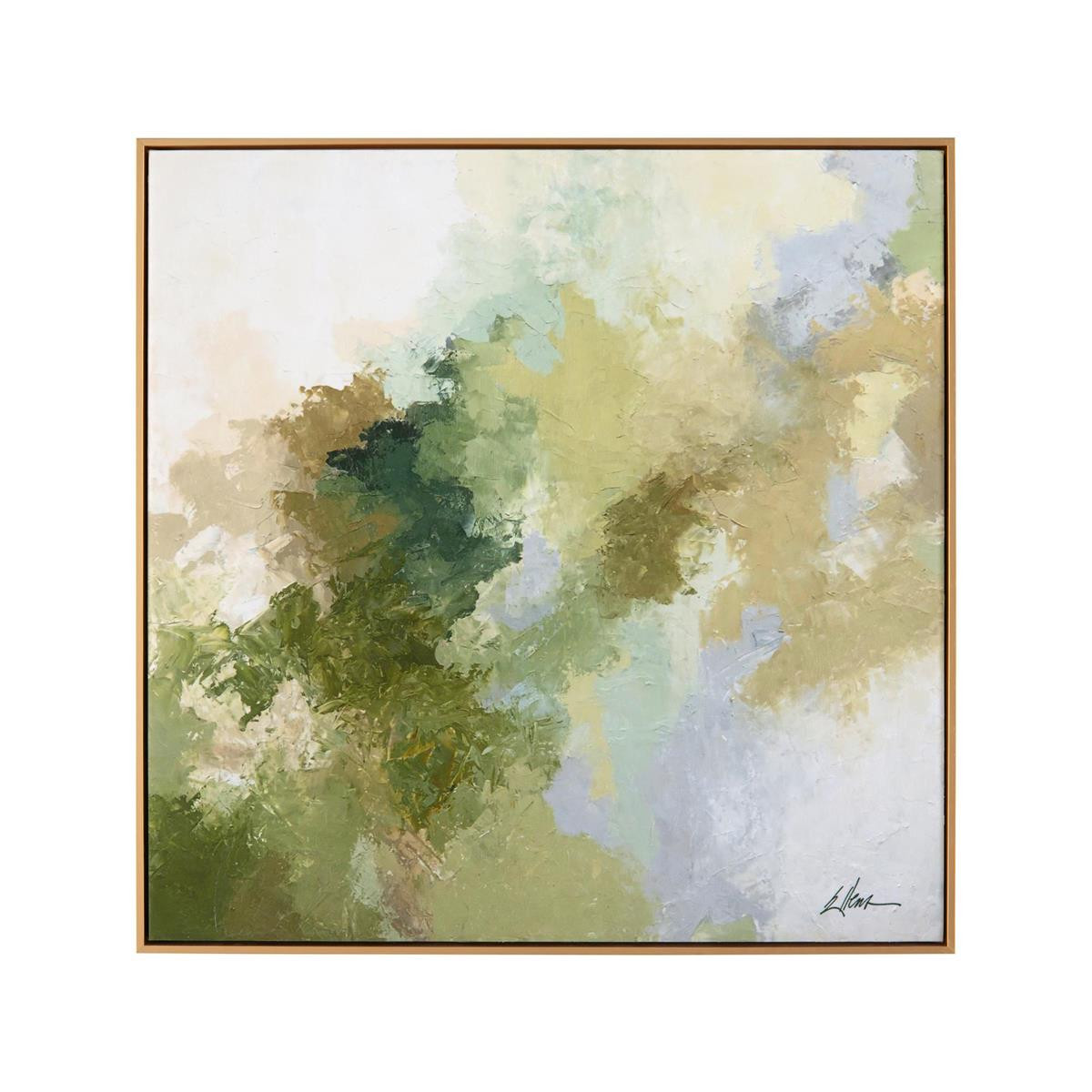 Enjoy the Jackie Ellens' Shades Of Summer Ii in your home today! Jackie Ellens' Shades of Summer design is reproduced on canvas, with a heavy texture applied by hand over the many green colors. The art is framed in a gallery molding with a gold finish.