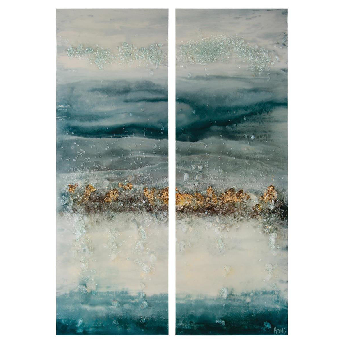 Enjoy the Mary Hong's Rolling Tide - Set of Two in your home today! Rolling Tide, a diptych taken from glass artist Mary Hongs piece Rolling Thunder, is a handsome creation featuring her signature broken glass technique and a high-gloss vitreous finish.