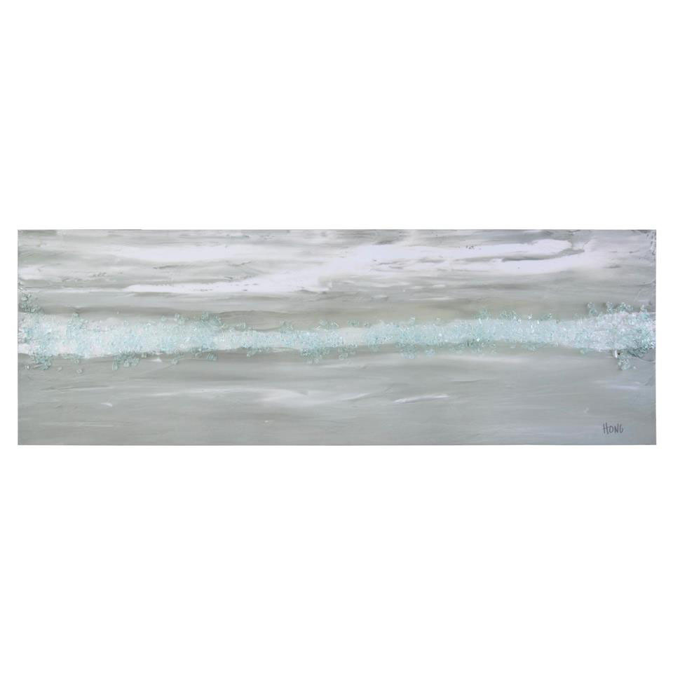 Enjoy the Mary Hong's Slate in your home today! Soft gray tones are highlighted by hand-poured broken glass embedded in a high-gloss vitreous finish. The horizontal piece by artist Mary Hong is a subtle addition to a space.