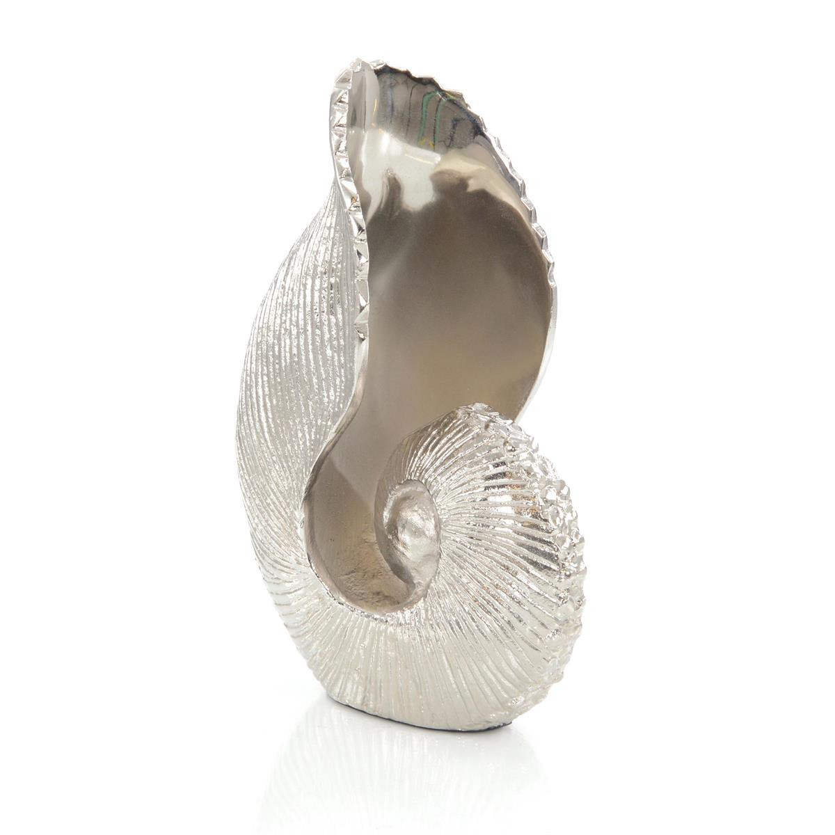 Enjoy the Nautilus Seashell Nickel Sculpture in your home today! Add a touch of the beach life to your home with this hand-cast aluminum nautilus seashell in a nickel finish.