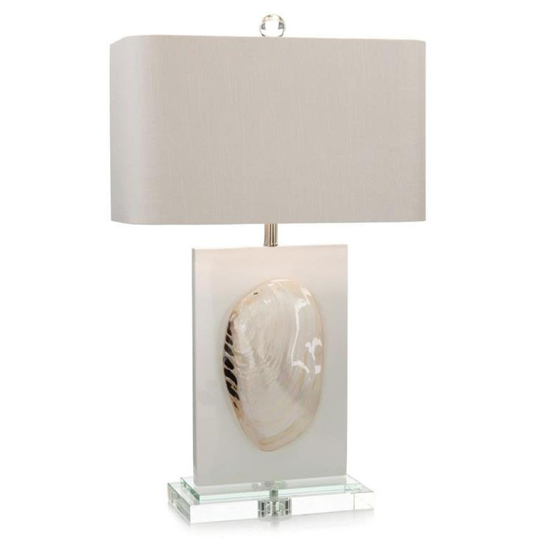 Enjoy the Sarasota Table Lamp in your home today! This table lamp is a must-have piece for a beachy abode. It is designed with an acrylic panel inlaid with a glossy natural seashell. It is finished with a linen shade and a tiered acrylic pedestal base. Shade: (17" X 9") X (17" X 9") X 10", White, Man-Made Linen. 3 Way, 150 Watt Max, Type A Bulb, 8.5" Harp
