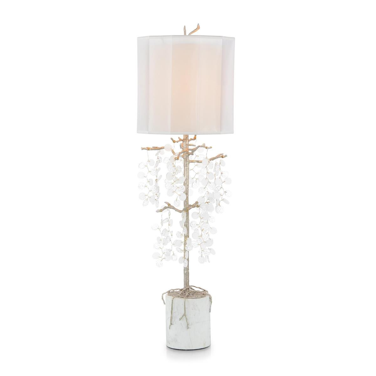 Enjoy the Shiro-Noda Buffet Lamp in your home today! Shiro-noda variegated, frosted, and clear crystal clusters dramatically drip from this ornamentally stunning, illuminated buffet lamp with a white marble base. *Marble is a naturally occurring stone mined for its beauty in various regions of the world. The chemical and mineral composition of the marble from the locale it is found, creates the vast array of color and pattern variations seen in this classic decorat