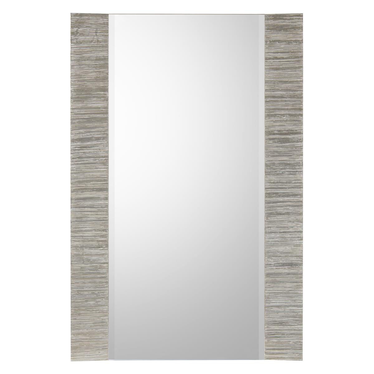 Enjoy the Silver Boundaries in your home today! This mirror is bordered on two sides in a linear texture and finished in our Washed Silver with a clear mirror between. It is prepared to hang in portrait or landscape orientation.