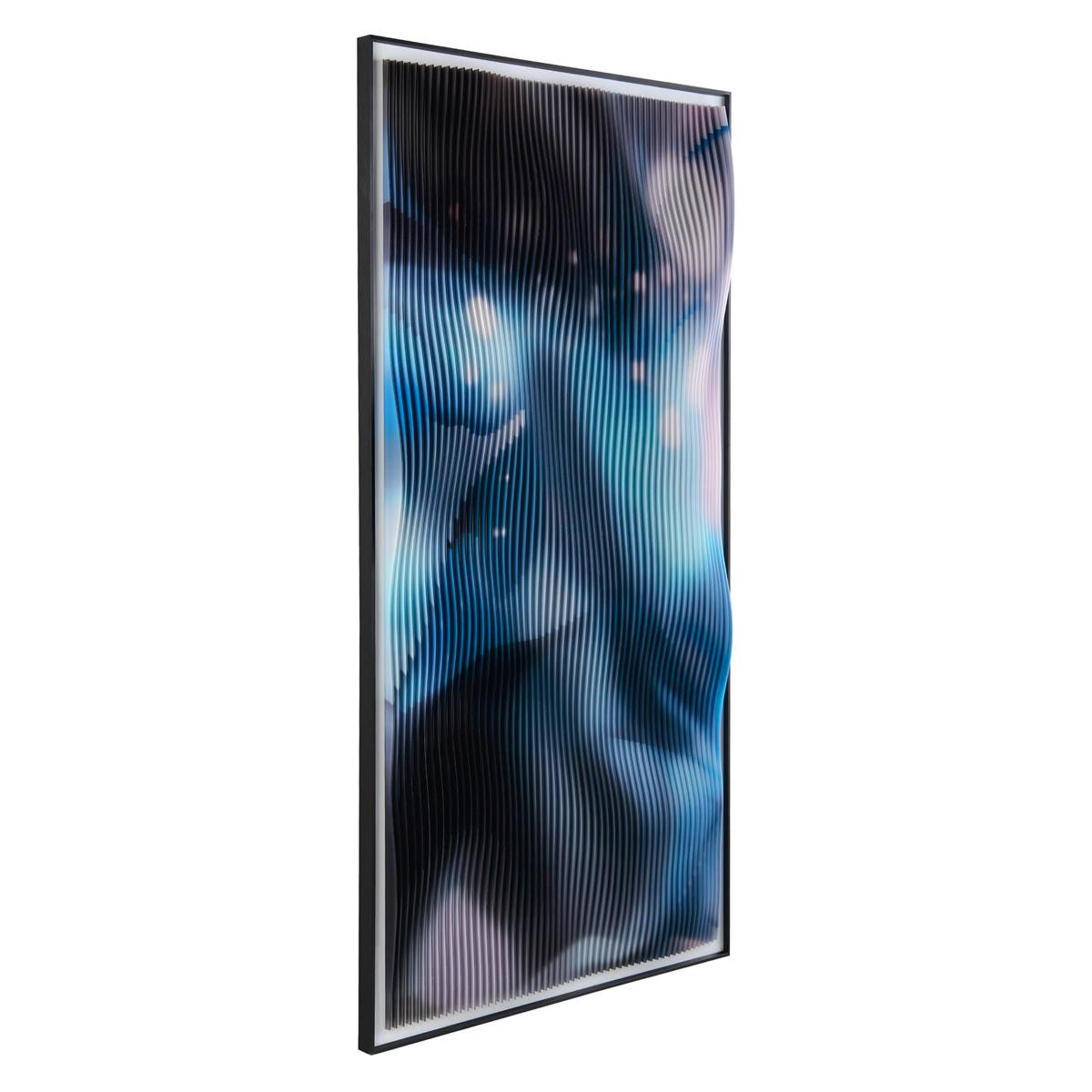 Enjoy the Tony Fey'S Colors Flowing in your home today! With varying shades of navy, blues, and white, the dramatic peaks and valleys of these acrylic panels create an aurora of intrigue. This original artwork by artist Tony Fey is finished in a black molding.