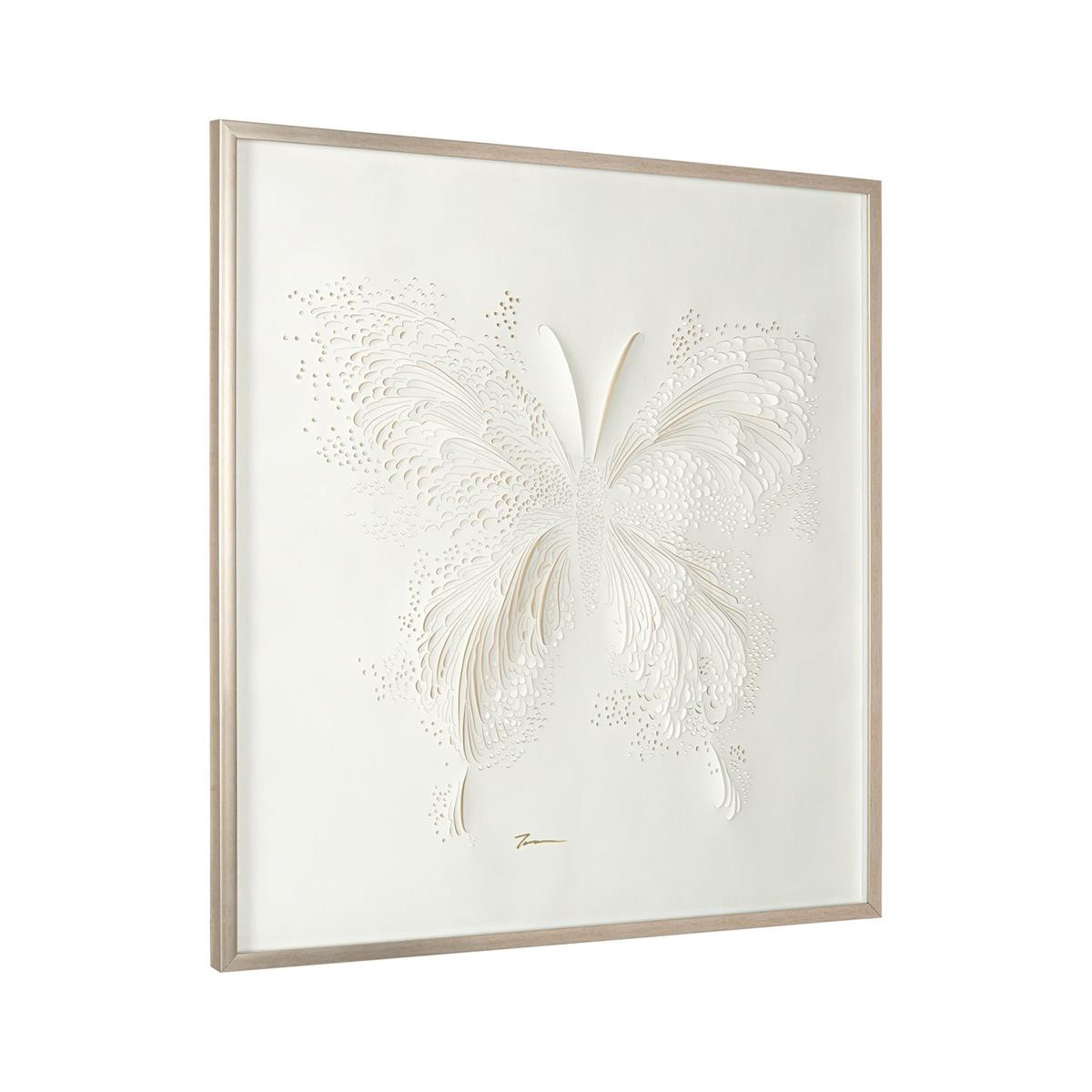 Enjoy the Tony Fey'S Mystical Wings in your home today! Tony Fey's intricate and delicate cuts in ivory paper bring this beautiful butterfly to life. The three-dimensional creation is surrounded by a champagne wood frame. *Wooden artifacts which are carved or shaped may develop small hairline cracks or variations in the woods surface over time. These small imperfections are created by the nature of wood which is constantly changing over time as it dries out and settles to i