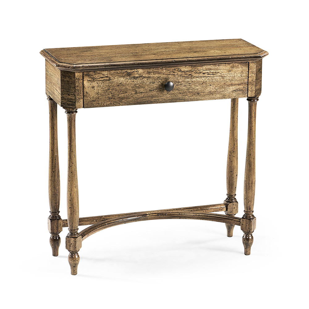 Enjoy the Casual Accents Medium Driftwood Console Table in your home today! Victorian style console table in a medium driftwood finish with one drawer, baluster legs and a curved intersecting stretcher. Perfect for an entryway or hallway accent.