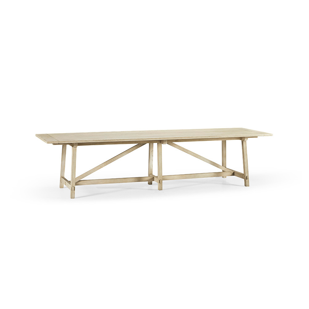 Enjoy the Timeless Sidereal French Laundry Dining Table 125" in Stripped Oak in your home today! Jonathan Charles Sidereal French Laundry Dining Table is the perfect combination of unparalleled furniture craftsmanship, elegant functional solutions, and inspiring design. Powerful honed forms in stripped oak elicit a raw appreciation for natural materials and offer a unique experience of understated luxury. With the ability to extend up to 173 inches with removable leaves, Sidereal is one of our largest tables to date.
