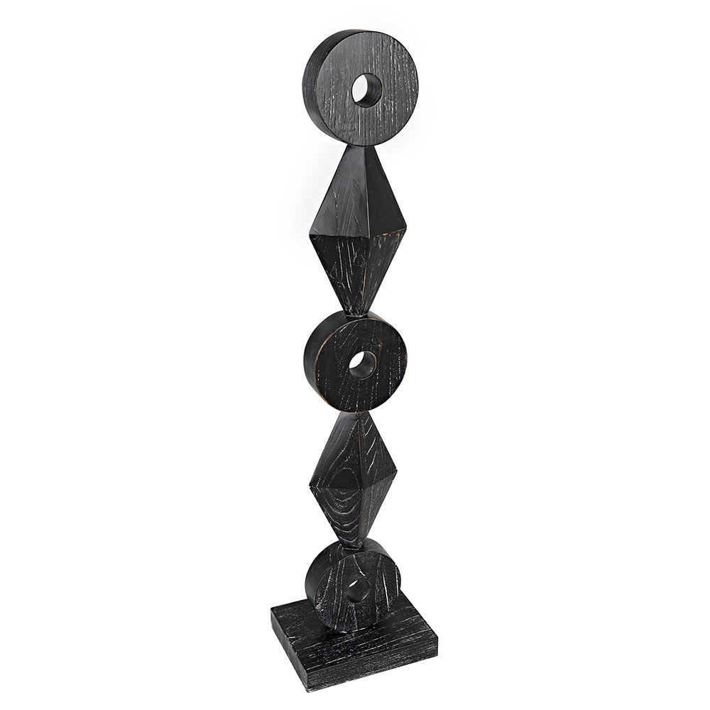 Enjoy the Totem Sculpture - Cinder Black in your home today! Assertive and profoundly compelling, this modernized totem takes inspiration from the past with familiar, geometric shapes in mindi wood. It is finished with hand-applied layers of deep cinder-black that highlight the intrinsic beauty of the wood's natural grain. Reaching just a touch under six feet in height, it is anchored by a simple square base in the same material.