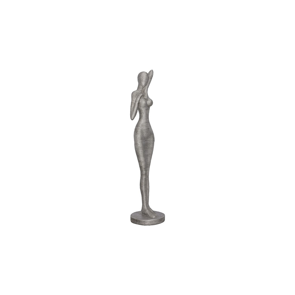 Enjoy the Admiring Standing Sculpture - Aluminum in your home today! The Admiring Standing Sculpture is made of aluminum in a striated surface that brings it one aspect of its design distinction: when the finish is rubbed onto its surface, it collects in the valleys to bring added patina to the gray sculpture. This lends it a textural feel that convinces the eye this is a vintage decorative accessory. In the foyer of a modern home filled with contemporary art, this decorative accessory will hold its own. We offer a number of sculptures in this family of decorative accessories. Each of these reflects the ethos that Phillips Collection personifies: modern organic. Disclaimer: Aluminum works outdoors and is not prone to rust, but has a high affinity to oxygen and will eventually oxidize. This develops a hardened white-colored coating across the surface of the metal, infusing your piece with authentic natural beauty and additional protection. Depending on conditions, this process occurs between 1-12 months of outdoor exposure.