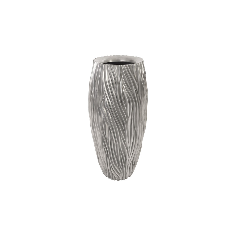 Enjoy the Alon Planter - Polished Aluminium in your home today! The metallic finish on the Alon Large Tall Silver Planter convinces the eye that this decorative planter is made of metal but it's fashioned from composite, which our talented finish artisans have given a brilliant sheen. This means it will far outlast any garden planter made from a material that could rust. The combination of its gleaming surface and textural pattern makes this piece a shoe-in for the Phillips Collection ethos, which we call modern organic. We offer several finishes and shapes of this design. Disclaimer: The Polished Aluminum finish is real aluminum powder applied to cast resin form. This finish is suitable for indoor and outdoor use.