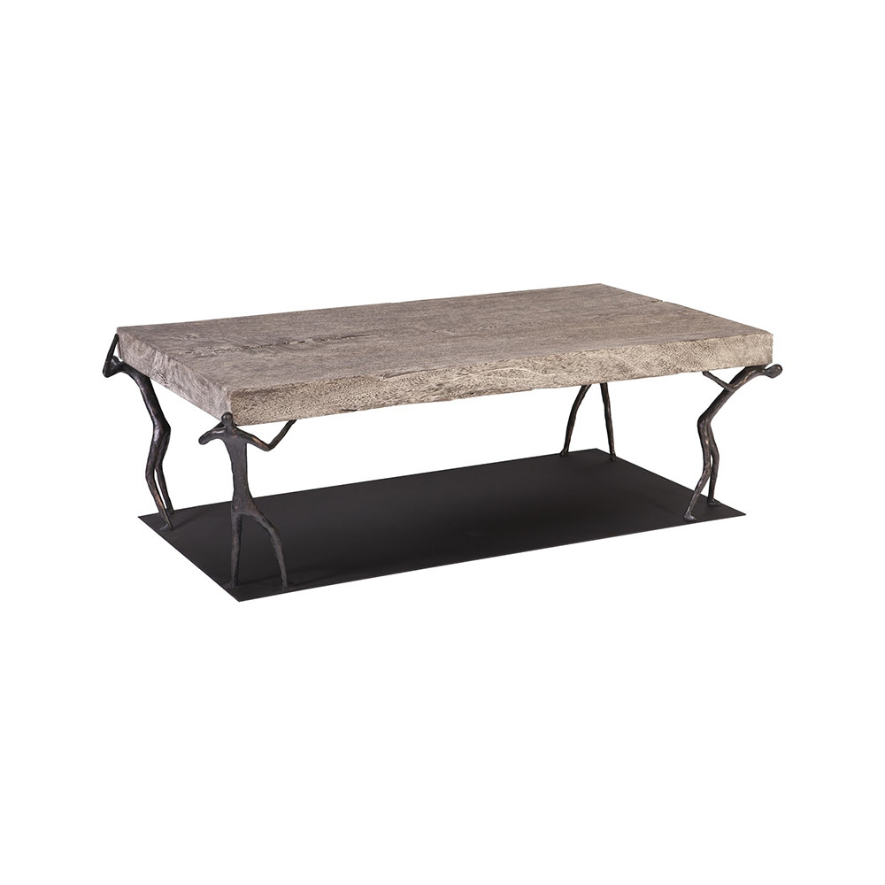 Enjoy the Atlas Coffee Table - Chamcha Wood - Gray Stone Finish - Metal in your home today! The Atlas Gray Coffee Table has a storied namesake. In Greek mythology, Atlas was the Titan god of endurance whom Zeus tasked with holding up the celestial heavens for eternity. The figures supporting the wood top of this gray coffee table have as weighty a job as the mythical hero. With exquisite craftsmanship, we have rescued the reclaimed chamcha wood top from being one of Natures finest castaways by making it into an elemental design statement. Combined with the whimsical black metal base, the overall style is fitting for a number of interiors, including contemporary, modern farmhouse, and industrial chic. There are a variety of furnishings and accessories in the Atlas Collection that reflect the ethos Phillips Collection personifies: modern organic. Disclaimer: This piece is crafted from natural solid wood. Color and character of wood grain may vary, adding a unique character to your piece.