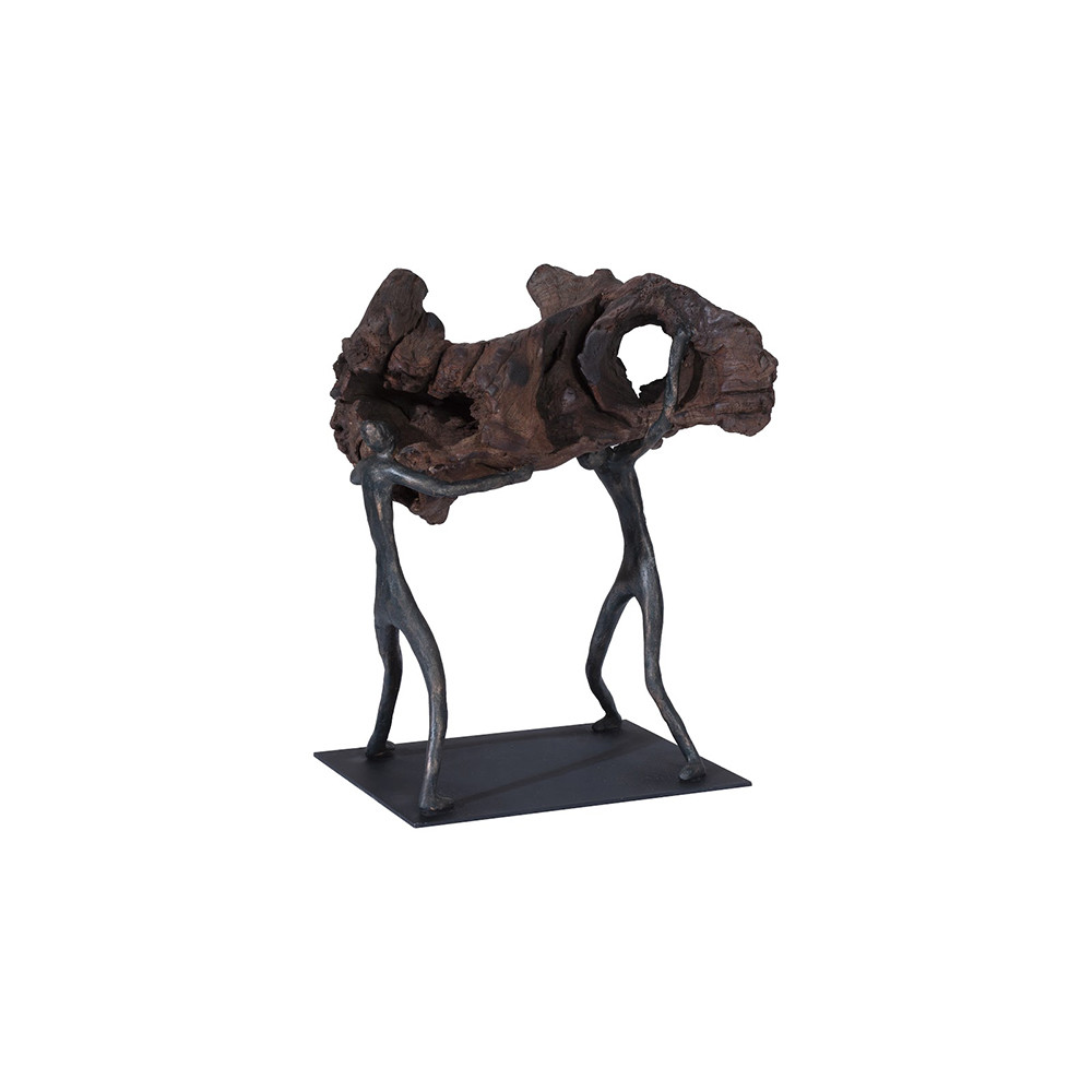 Enjoy the Atlas Tabletop Sculpture - Freeform High Lift - With Base - Dark in your home today! The Atlas Balancing Wood Sculpture has a storied namesake. In Greek mythology, Atlas was the Titan god of endurance whom Zeus tasked with holding up the celestial heavens for eternity. The black figures extending from the black base on this sculpture, which support the organically shaped wood artifact, have as weighty a job as the mythical hero. With this sculpture, weve taken a piece of chamcha wood that would have been one of Natures castaways and made it into an elemental design statement. Given with the minimal feel of this composition, the overall style is fitting for a number of interiors, including contemporary, modern farmhouse, and industrial chic. There are a variety of furnishings and accessories in the Atlas Collection that reflect the ethos Phillips Collection personifies: modern organic. We have three decorative sculptures in this series. Disclaimer: This piece is crafted from natural solid wood. The color and character of wood grain may vary, adding a unique character to your piece. This piece is NOT suitable for outdoor use.