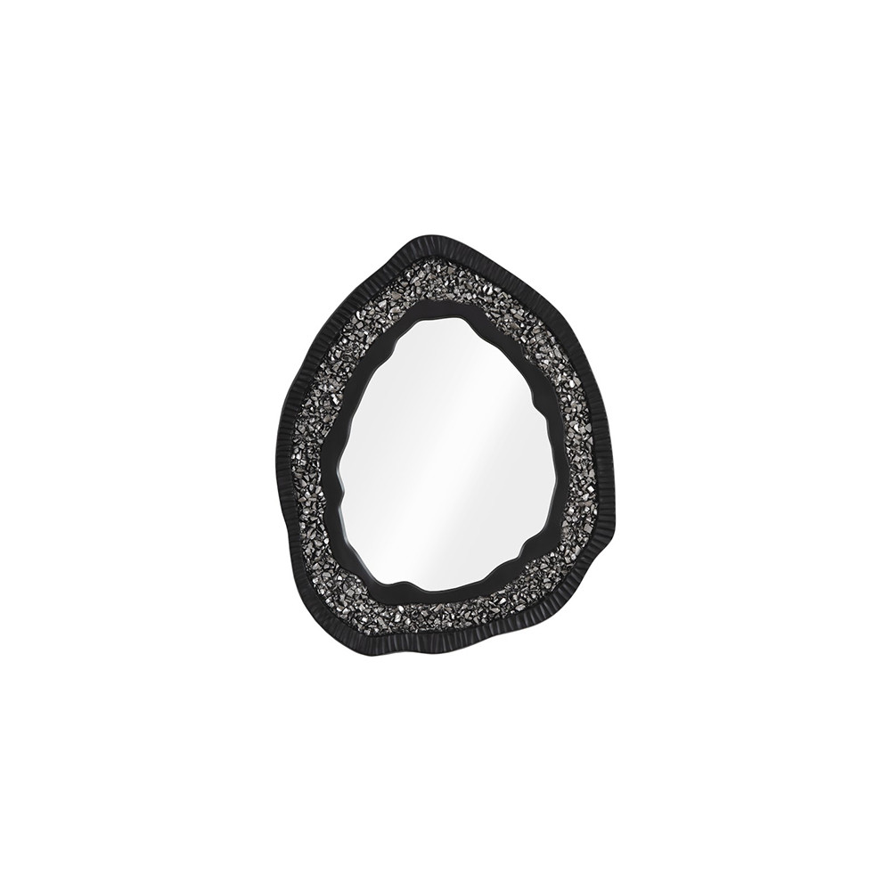 Enjoy the Geode Mirror - Black And Silver - Matte in your home today! Exhibiting the characteristics of a real piece of glittering stone, the Geode Silver Mirror is a trickster, as it is made of composite in a mix of matte black and silver finishes rather than rock that has developed its sparkle over centuries underground. We cast the silver and black decorative mirror with organic lines to mimic the asymmetrical profile for which real geodes are known. For a warmer color palette, we also offer the Geode in a black and gold combination. These oval mirrors reflect the ethos that Phillips Collection personifies: modern organic. Disclaimer: The silver leaf finish applied to our products is known for its luxurious metallic appearance. However, this finish can be susceptible to scratching if not handled carefully. Silver leaf is a delicate material; abrasions may occur during routine use or contact with abrasive surfaces. To maintain the pristine condition of your silver leaf-finished items, we strongly recommend using coasters or protective pads when placing objects on the surface. These coasters act as a safeguard, minimizing the risk of scratches and preserving the beauty of the silver leaf finish. While we strive to provide durable and high-quality finishes, it's important to acknowledge that any abrasive or sharp objects in contact with the surface may lead to unintentional damage. Therefore, please be careful and follow proper care guidelines to ensure the longevity of your silver leaf-finished products.