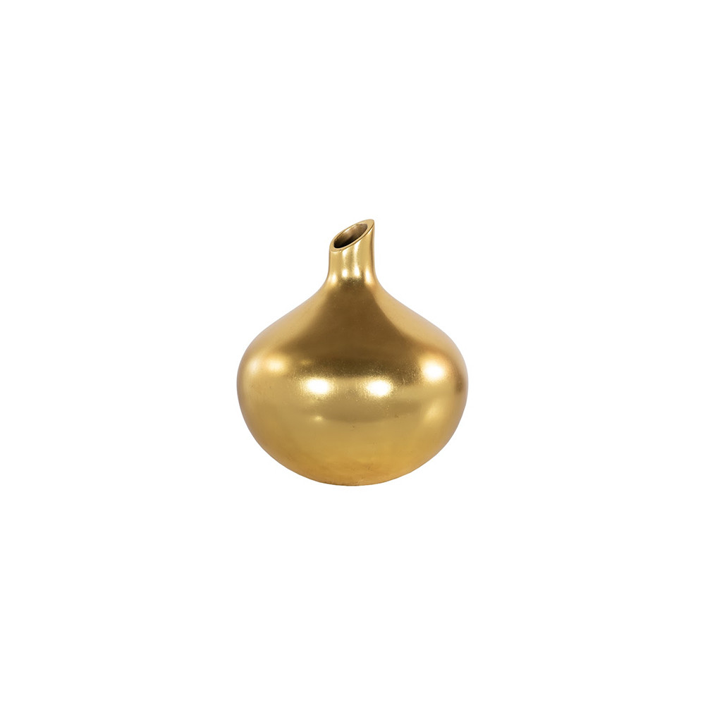 Enjoy the Katha Vase - Gold Leaf in your home today! The Katha Gold Vase is a pear-shaped gold vessel made of composite in a luminous gold leaf finish. The decorative accessory will shine even when flowers are absent thanks to its brilliant surface. We offer the Katha in three finishes, which makes them even prettier when grouped. Combining the gold Laura and Julian vases with this version of the Katha also creates a powerful arrangement. All of these reflect the ethos the Phillips Collection personifies: modern organic. Disclaimer: The gold leaf finish applied to our products is known for its luxurious metallic appearance. However, this finish can be susceptible to scratching if not handled carefully. Gold leaf is a delicate material; abrasions may occur during routine use or contact with abrasive surfaces. To maintain the pristine condition of your gold leaf-finished items, we strongly recommend using coasters or protective pads when placing objects on the surface. These coasters act as a safeguard, minimizing the risk of scratches and preserving the beauty of the gold leaf finish. While we strive to provide durable and high-quality finishes, it's important to acknowledge that any abrasive or sharp objects in contact with the surface may lead to unintentional damage. Therefore, please be careful and follow proper care guidelines to ensure the longevity of your gold leaf-finished products.