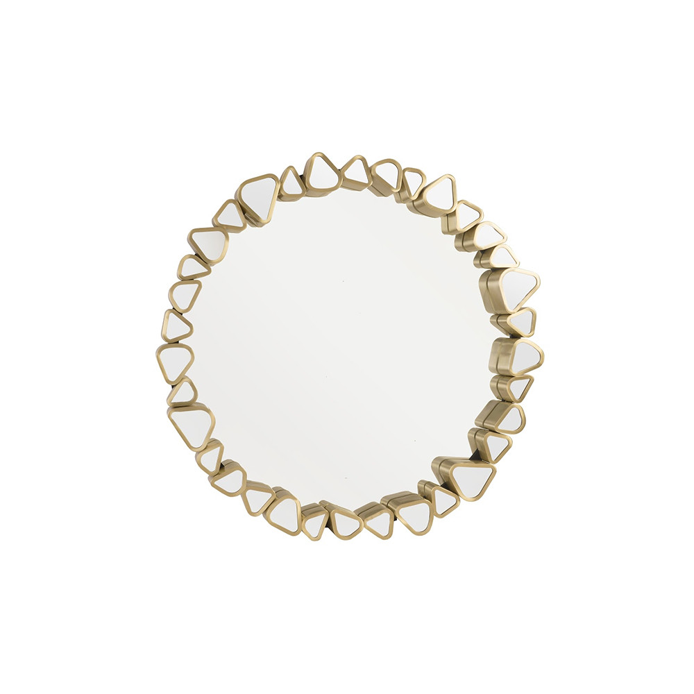 Enjoy the Pebble Mirror - Round in your home today! If we described the Pebble family of products as stacked stones, wed give the wrong impression, as these furnishings are not made of rocks; they are created from long lengths of playful shapes that are reminiscent of river rocks in contour only. These are created when organically shaped pieces of mirror are encased in metal in a brushed brass finish, as is the case with the Pebble Round Mirror. The collection also includes an end table, table lamps, and floor lamps, each of which reflects the ethos that Phillips Collection personifies: modern organic.