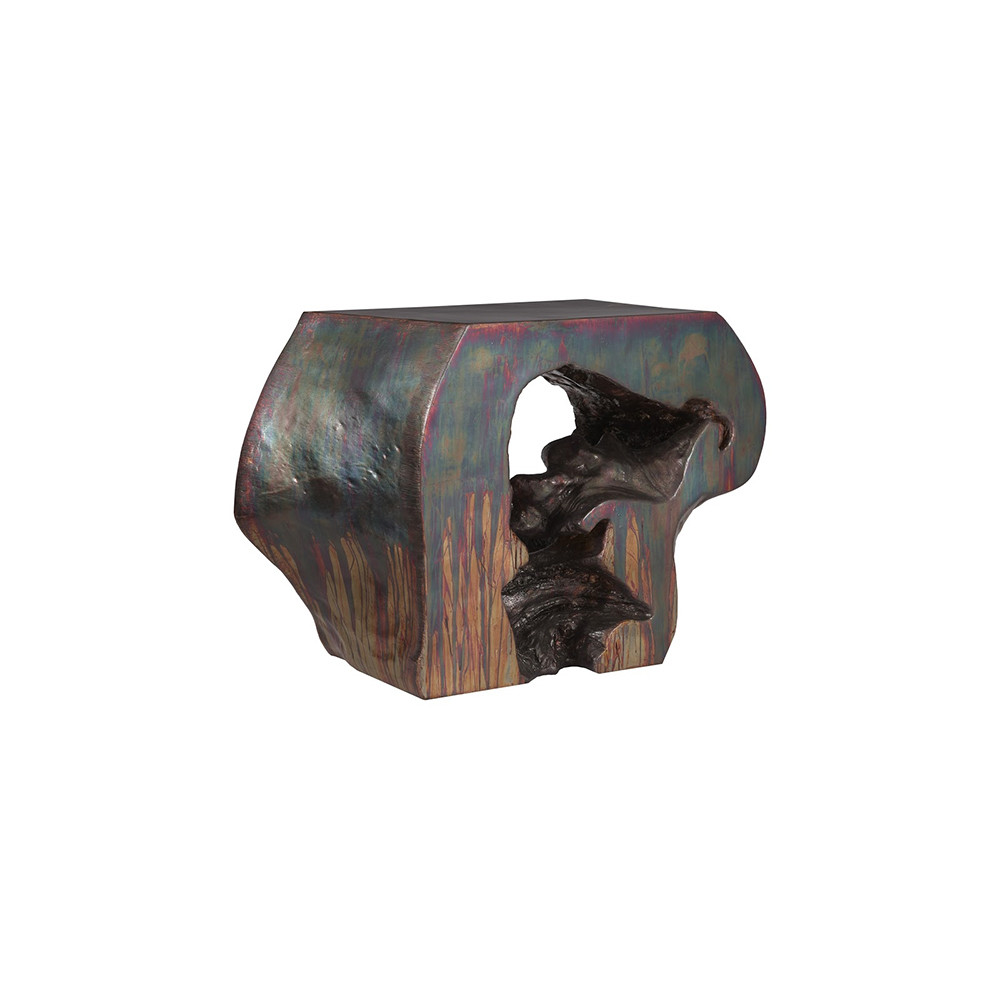 Enjoy the Plateada Hollow Console - Copper Patina Finish in your home today! The Cast Naturals Collection highlights our skill at taking an innovative material and making it feel as if it sprang from Nature. The Plateada Copper Hollow Console is made of composite that has been molded to look like a piece of burled wood it took nature eons to create. The advantage of having a console table made from this durable material is that it will long outlast its natural counterparts pulled from the forest floor. This piece is the perfect representation of the Phillips Collection ethos: modern organic. We offer the Plateada Consoles in a number of finishes. Disclaimer: Each piece varies slightly in color and pattern due to the hand-applied, acid finish. The Plateada console is cast in artisan-grade resin from a natural wood root. We celebrate the beauty and essence of the natural wood by capturing the cracks, knots, dents and textures that Nature has created. Please note that this character is intentional and present in every piece.